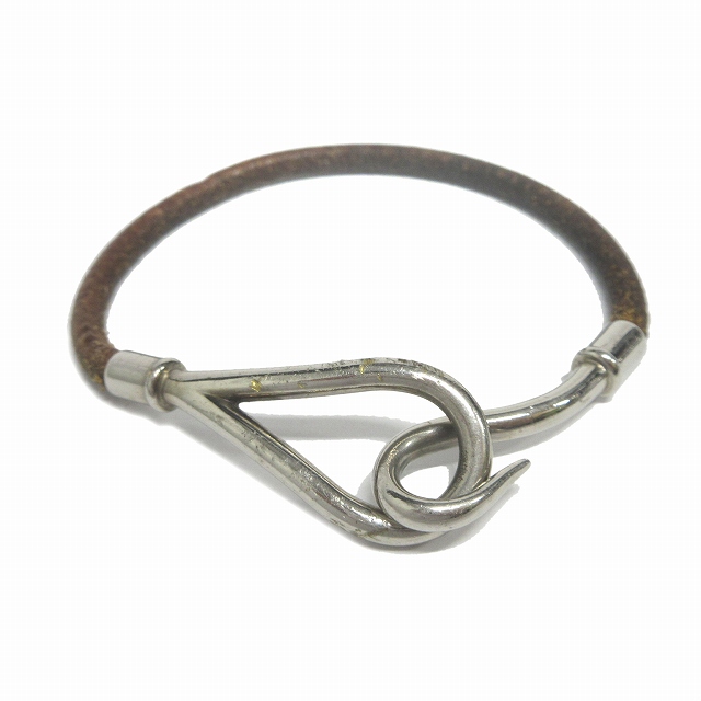 エルメス Hermes ジャンボ レザー ブレスレット バングル アクセサリー シルバー金具 茶 ブラウン メンズ レディース 11 026 ベクトルパーク